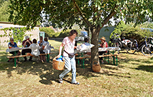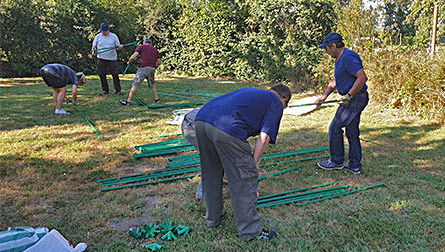 Aufbauen der Zelte, Tische und Bänke. Kaum angefangen,