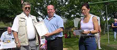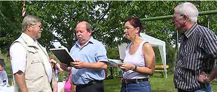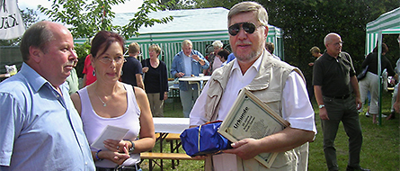 überreichen Günther Uhlig, 1. Vorsitzender, eine Urkunde mit