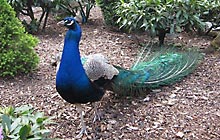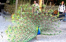 Vögeln und eine Menge Pfauen.