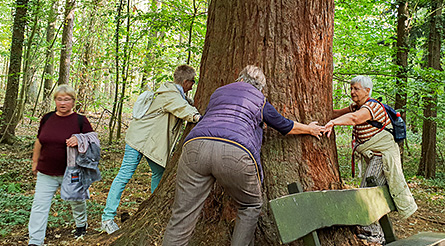 Mammutbaum, der mit 5 Personen geradeso umfasst werden