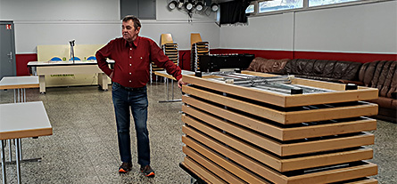 erst wieder aufgebaut werden, 4 Tische, Stühle und unsere