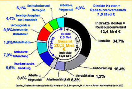 vorzeitige Mortalität (sieben Milliarden Euro), Frühberentung (3,1